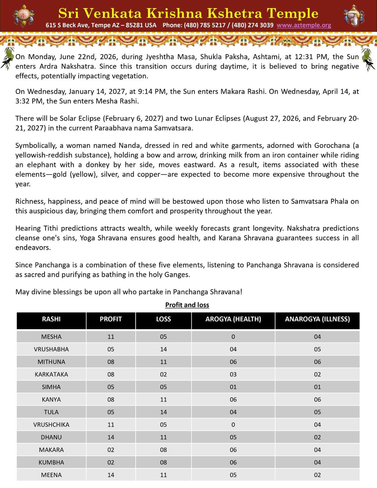 Panchanga Shravana